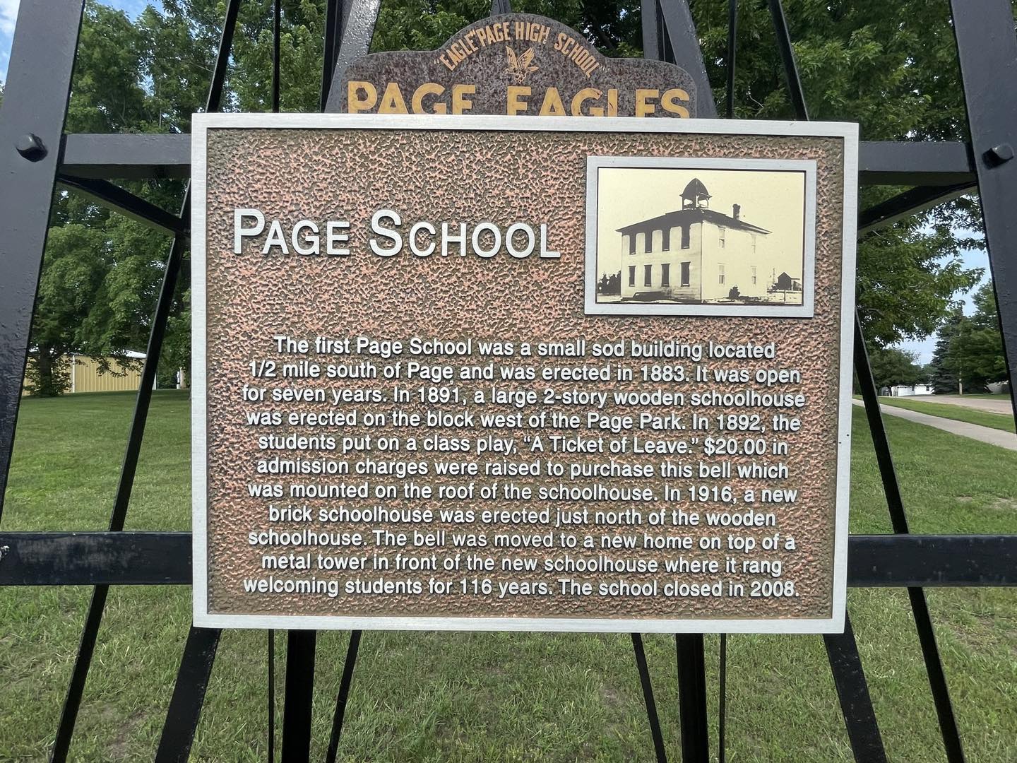 On November 20, 1883, upon the written petition of the majority of qualified voters, a meeting was called at the home of W. W. Page. The purpose of the meeting was to decide where the school building should be erected and what type of building it should be. R.B. Hunter was chosen as director, W.W. Page, treasurer and Duran Hunt, Moderator. Mr. Hunt leased the northwest acre of his farm, a site one-half mile south of present day Page, to the district for ninety-nine years for two dollars a year. The school was called Pleasant Valley, a suitable name because of the peaceable and pleasant settlers.